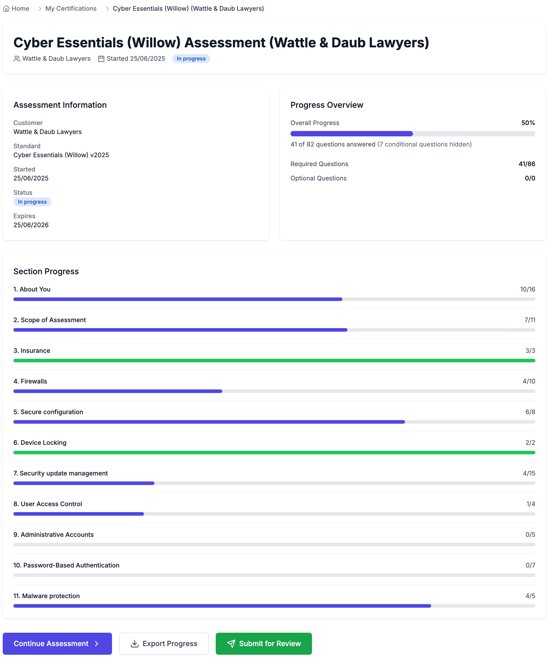 Built by one of the UK's leading Cyber Essentials certification bodies - informed by our experience leading hundreds of organisations through Cyber Essentials certifications.